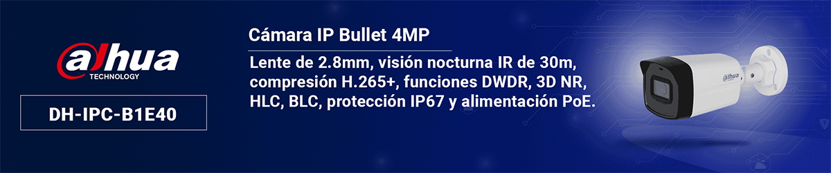 - Iluminación IR: LED IR incorporado con un alcance máximo de 30 m.