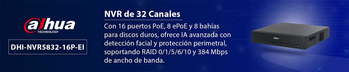 - Cámaras: Admite cámaras IP con resolución hasta 32MP